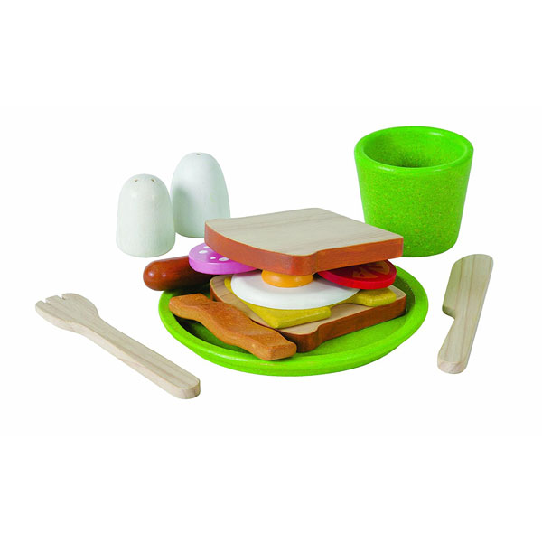 | 配件清單 | 盤子 杯子 土司片2件 刀子 叉子 香腸 蘑菇片 荷包蛋 培根片 起司片 番茄片 火腿片 調味罐2件(鹽罐+胡椒罐) |