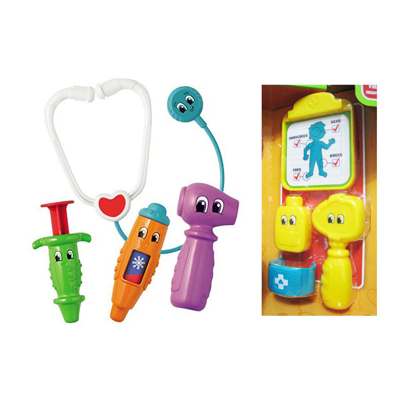 - 8種醫療道具: 聽診器、針筒、體溫計、耳鏡、反射鎚、醫生診斷卡、乳液和病患手環