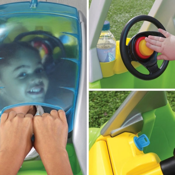 - 活動式底板搭配車頂把手,家長可以推著小小孩,開車逛街、購物、玩樂,孩子更開心