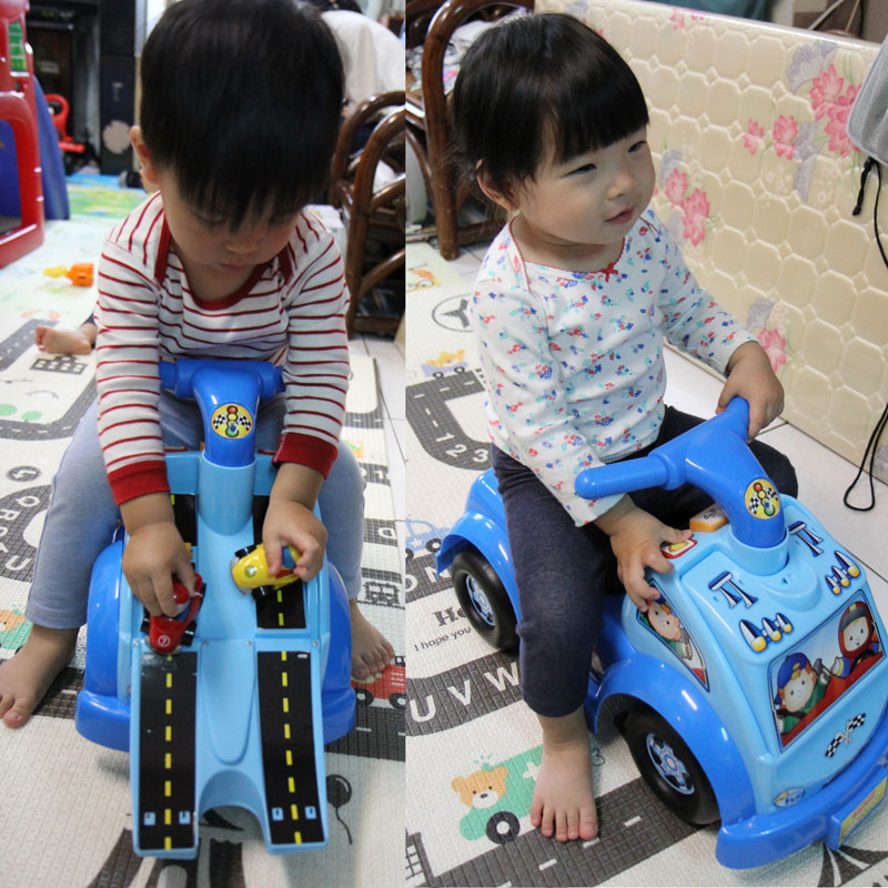 媽咪分享 搖馬是哥哥和妹妹的這階段的最愛,哥哥最愛一邊搖一邊說:「搖~搖~搖~」,總共搖了11個月才還啊。 Little Learner音樂學步車是多功能的,從學步變換成坐著玩,過一陣子就騎著玩了喔。現在哥哥超喜歡把玩具藏在車後行李箱玩躲貓貓~