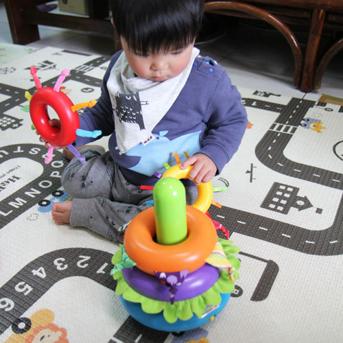 貼心建議 寶寶這時期認知與肢體發展快速,可多使用益智聲光玩具提供刺激。須注意配件不移過小以避免受傷,以及操作難度不要太高以建立自信心。另外使用搖馬時,請家長陪同。