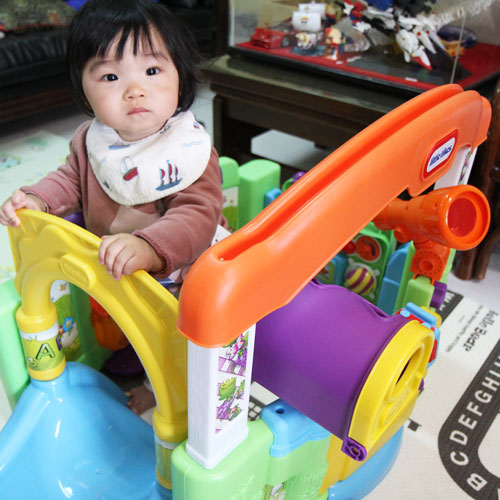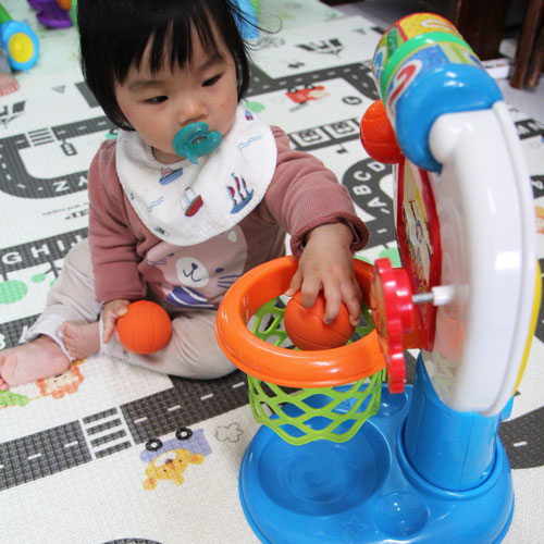 媽咪分享 現在兄妹倆喜歡把玩具放高高滑下,掉下來會有好聽音樂。哥哥愛把球放進籃框,聽到音樂好有成就感