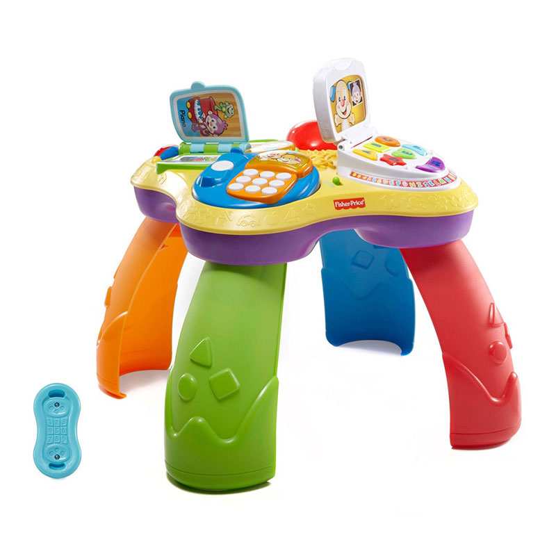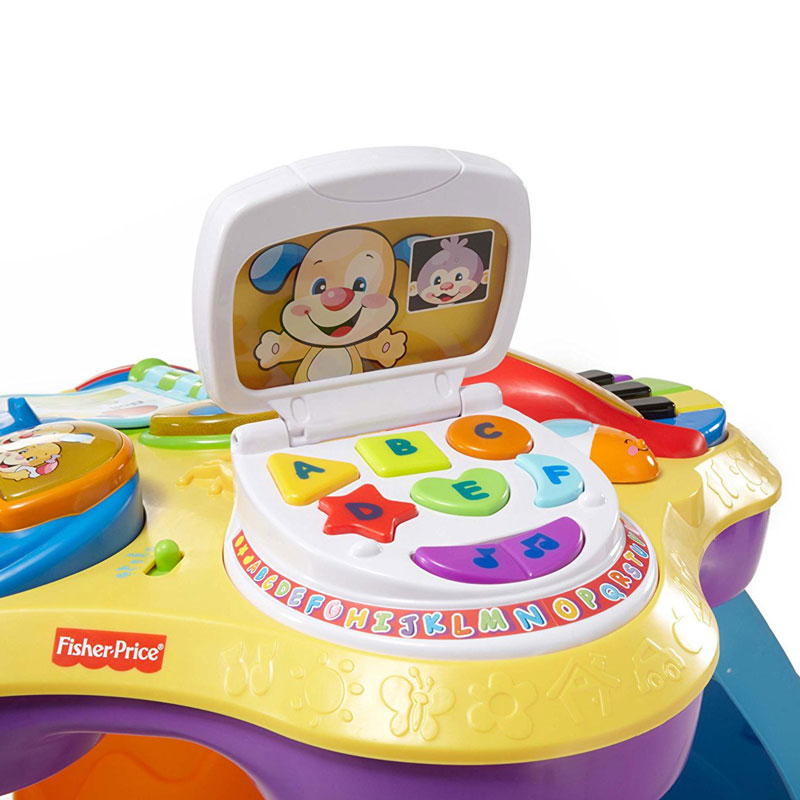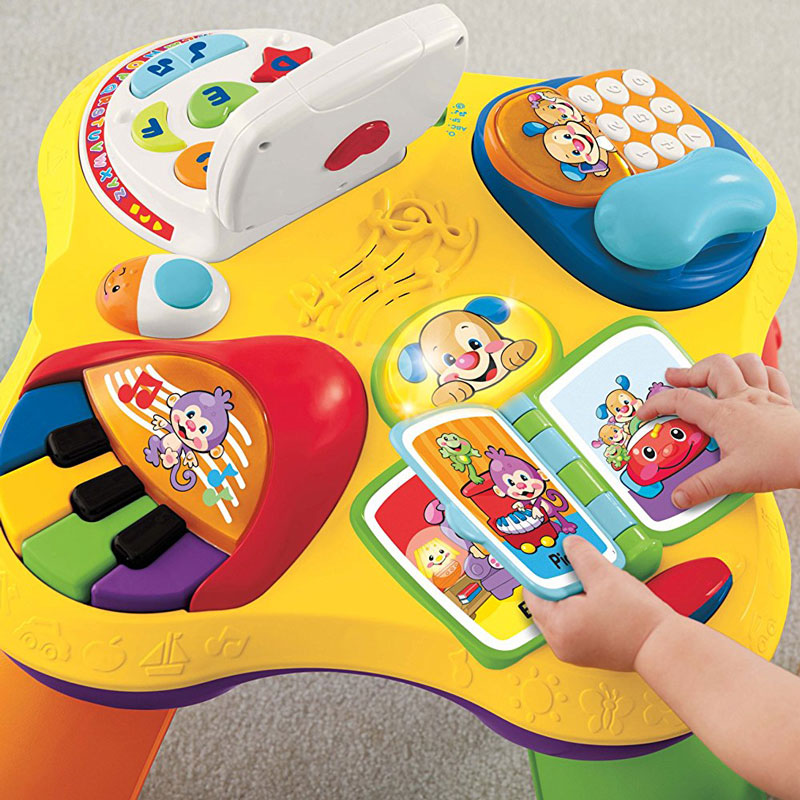 - 桌面有四個玩具: 筆記本電腦、電話、書本、鋼琴,鼓勵寶寶站立和巡航四周