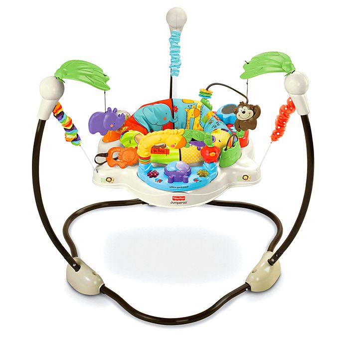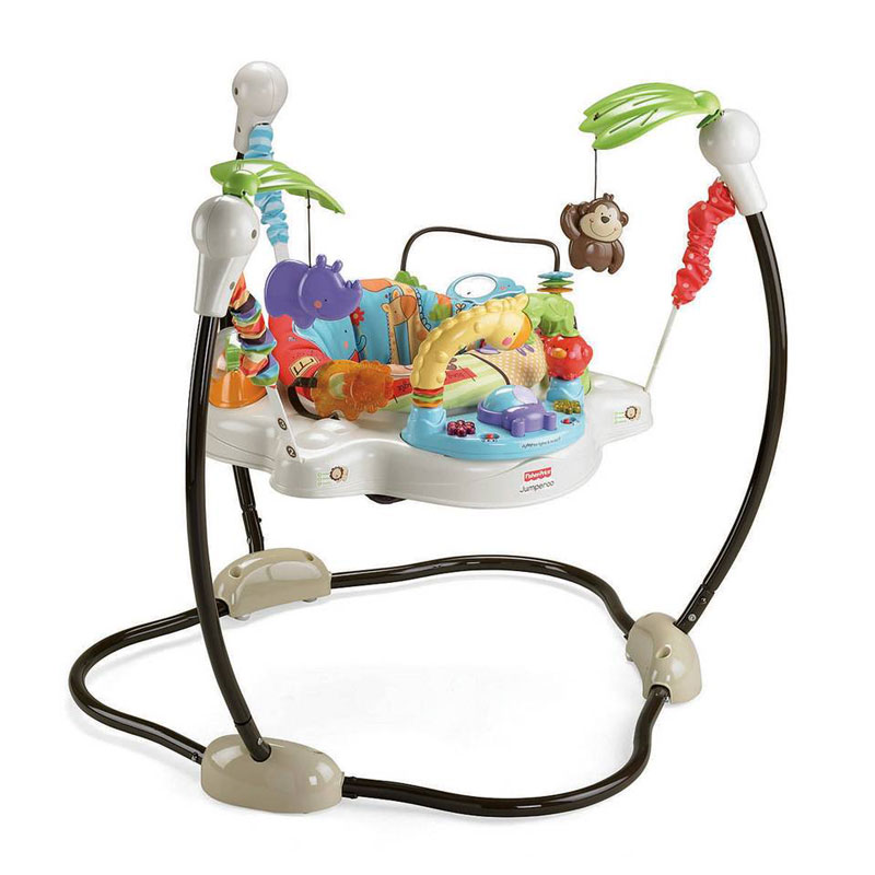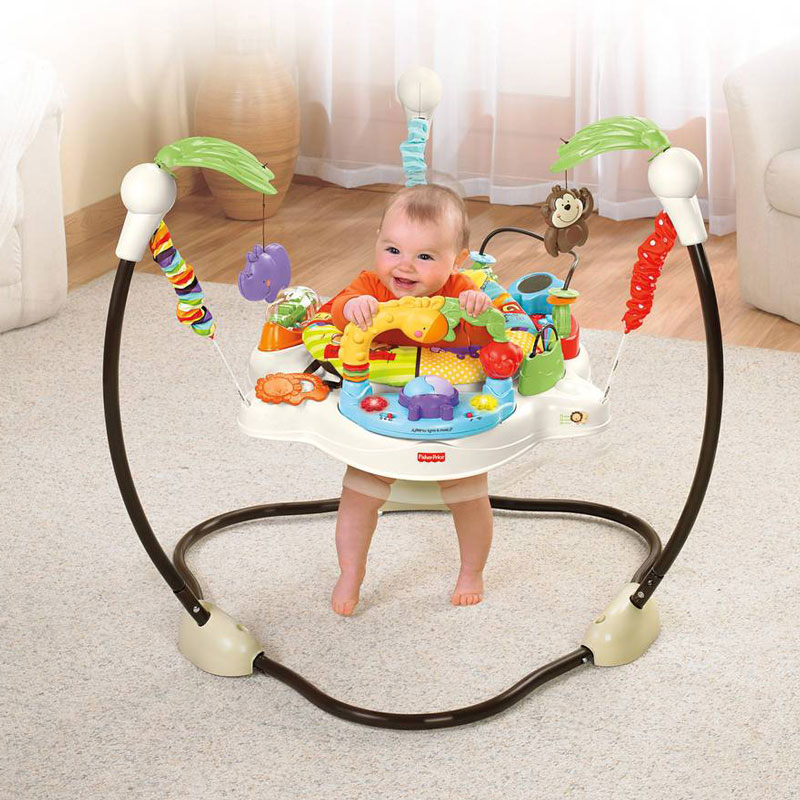 - 頭頂上的犀牛、猴子總是能夠吸引寶寶的目光想跳上去抓他! 跳動時音樂和燈光也會啟動,鼓勵寶寶多跳躍,可旋轉的座位有助嬰兒去探險。長頸鹿的小拱門下有可翻滾的河馬,會隨著音樂閃爍的小花燈光,還有轉盤、旋轉鱷魚、小鏡子、可撥動的串片等等許多會令寶貝愛不釋手的玩具!